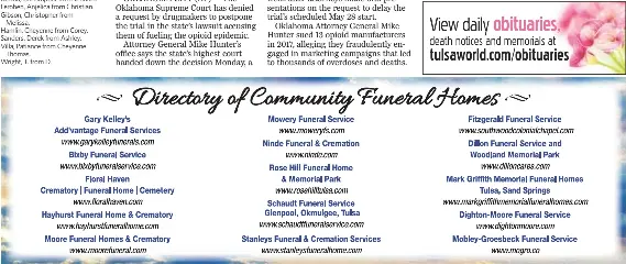 Subscribe to Obituaries 918 428-4431. Find an obituary get service details leave condolence messages or send flowers or gifts in memory of a loved one. Type Any Name Search Now.